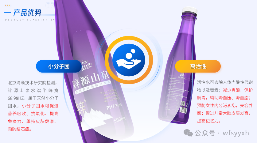 王贤中介绍说,五莲县锌源山泉水有限公司成立于2021年12月6日,注册资金2000万元。公司坐落在山清水秀、茶翠飘香的“中国最美生态旅游示范县”五莲县,是一家专业生产瓶装水的企业,拥有360ml、460ml、500ml三种规格产品。 锌源山泉水源地位于五莲县汪湖镇小湖村以南,地处沂沭大断裂带莒县-安丘中断,地质结构复杂,地壳运动频繁。水源为-300米地下水,水中含有锌、锶、偏硅酸、钙、镁等十余种对人体有益的矿物质微量元素,其中锌、锶、偏硅酸三项含量达到国家矿泉水标准,锌含量为1.22mg/L,锶含量为4.14mg/L,偏硅酸含量为32mg/L,特别是锌、锶两种元素的含量分别高出国家矿泉水界限标准的6倍、20倍;PH值7.8±0.5,活性高,含氧量高,冰点低(静态冰点-10℃左右),还是小分子团水(68.98HZ),水源稀缺、得天独厚,是一款真正的锌、锶、偏硅酸三复合型矿物质水。